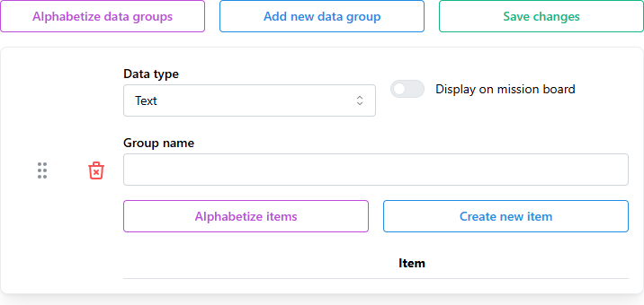 If you desire the data group to be displayed on the mission board, toggle the switch to then display it.