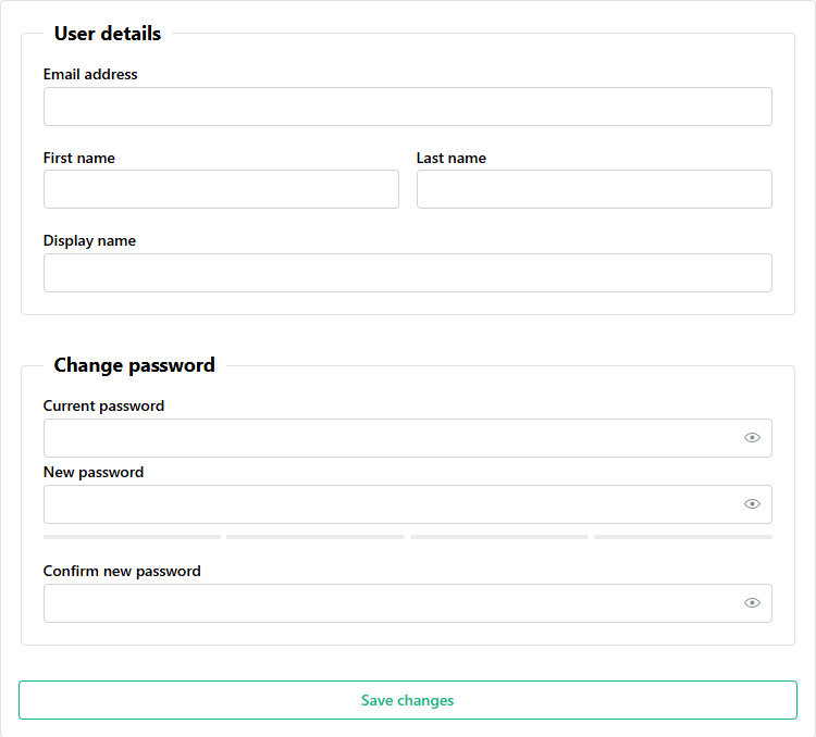 Users are able to change their password using this section. If no information is entered into these fields, it will be ignored when saving changes.